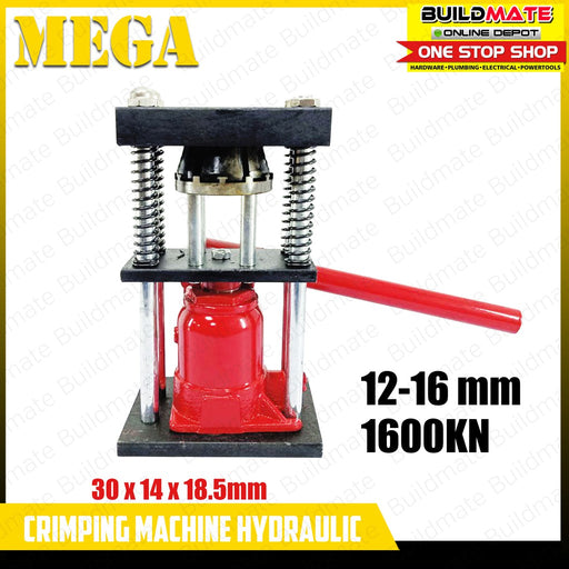Buildmate Online DepotMEGA Hydraulic Crimping Machine 12-16mm •BUILDMATE• SPECIFICATIONS: ►12-16mm ►1600KN ►30 x 14 x 18.5mm