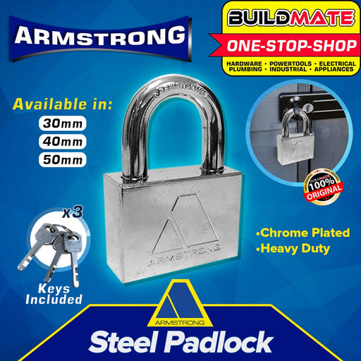 Buildmate Online DepotAMSTRONG Chrome Plated Steel Padlock Short Shackle 30mm | 40mm | 50mm SOLD PER PIECE •BUILDMATE•AVAILABLE IN:►30mm ►40mm ►50mm SPECIFICATIONS:►Chro...