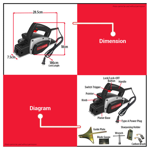 Buildmate Online DepotNo reviewsBUILDMATE Brand Electric Planer 680W 82mm 16000RPM for Woodworking Heavy Duty PL680C SPECIFICATIONS: ► Model: PL680C► Rated Power: 680W (Copper Mot...