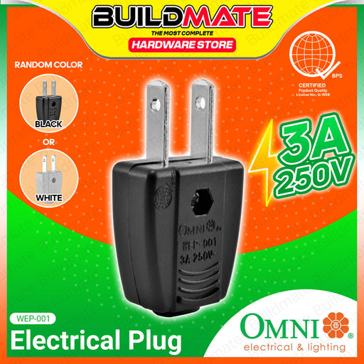 Buildmate Online DepotBUILDMATE Omni Electrical Plug 3A 250V RANDOM COLOR Only 2 Flat Pin Home Appliance DIY Wall Power Plug WEP001 SPECIFICATION:►Model: WEP-001 / WEP00...