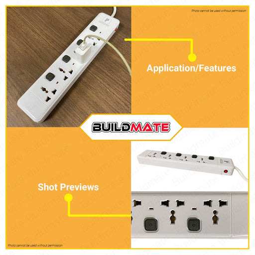 Buildmate Online DepotBUILDMATE Royu 4 GANG Extension Cord w/ Individual Switches Universal Electric Extension REDEC704G SPECIFICATIONS: ►Rated Voltage: 250V ►Max. Cu...