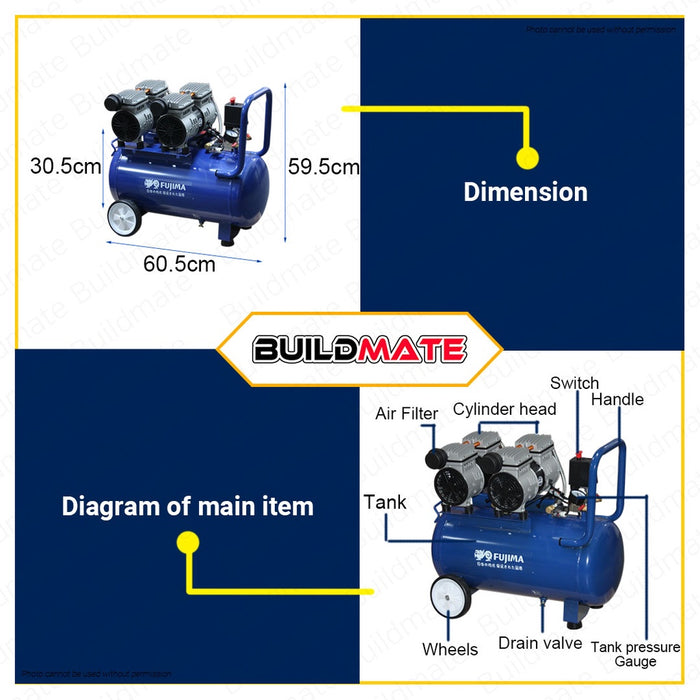 FUJIMA JAPAN 50L Air Compressor Oil Free Noise Less 2HP 1500W OFJ-50 •BUILDMATE•