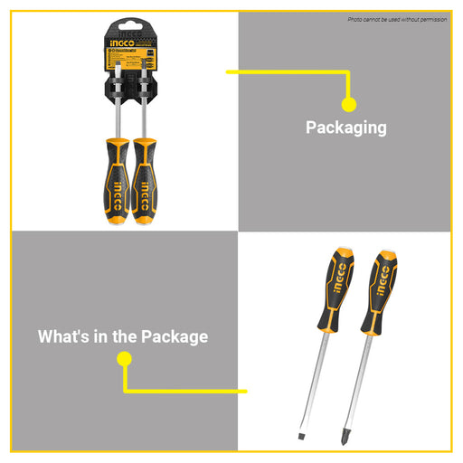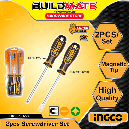 BUILDMATE Ingco 2pcs Screwdriver Set SL6.Slotted Flat / PH2 Phillips Cross Head Screw Driver Household Tool Repair Kit HKSDS0228 - IHT
