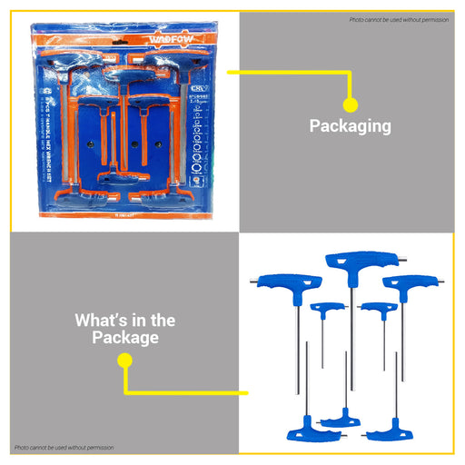 BUILDMATE Wadfow 8pcs T-Handle Wrench Set Torx / Ball Point / Hex Key With T-Shape Wrench Bar Handle Driver Spanner Grip Tool Repair Hand Tools Set - WHT