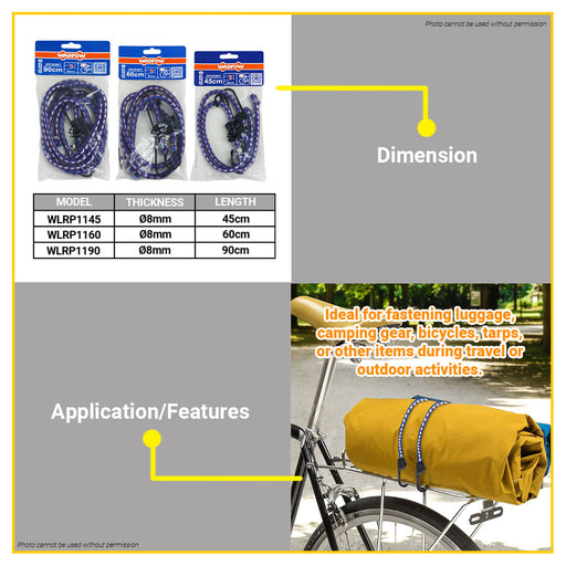 Buildmate Online DepotBUILDMATE Wadfow 2pcs Luggage Rope Set 45cm / 60cm / 90cm Bungee Cord Elastic Stretchable Travel Straps Stretch Band Binding Flexible Hook Rope SOL...