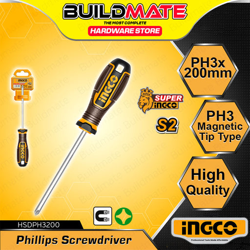 Buildmate Online DepotBUILDMATE Ingco Phillips Screwdriver PH3x20mm Crosshead Magnetic Non-Slip Screw Driver Repair Hand Tools for Electronics & DIY HSDPH3200 - IHT...