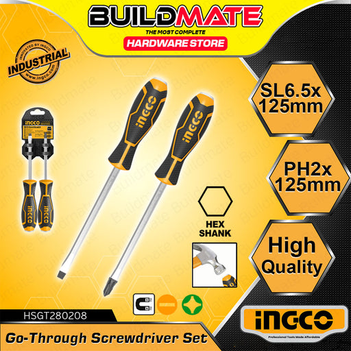 Buildmate Online DepotBUILDMATE Ingco 2PCS/SET Go-Through Screwdriver SL6.5 Slotted Flathead & PH2 Phillips Crosshead Screw Driver Repair Hand Tool Kit HSGT280208 - ...