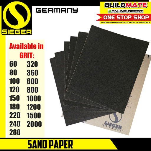 SIEGER Germany Sand Paper 28x23cm HIGH QUALITY comparable to 3M •BUILDMATE• Ā  AVAILABLE IN: ā–ŗGrit 60 ā–ŗGrit 80 ā–ŗGrit 100 ā–ŗGrit 120 ā–ŗGrit 150 ā–ŗGrit ...