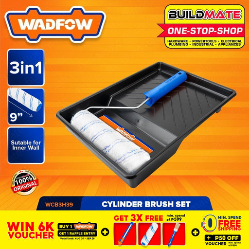 WADFOW CYLINDER BRUSH 3 In 1 SET (INNER WALL) Paint Roller Brush Paint Tray WCB3H39 •BUILDMATE• WHT