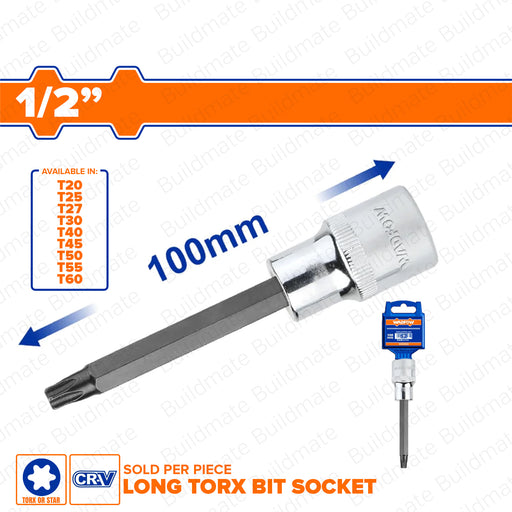 Buildmate Online DepotWADFOW 1/2" Long Torx Bit Socket T20-T60 Chrome Plated Cr-V Torx Bit SOLD PER PIECE •BUILDMATE• WHTAVAILABLE IN:►T20 X 100MM►T25 X 100MM►T27 X 100M...