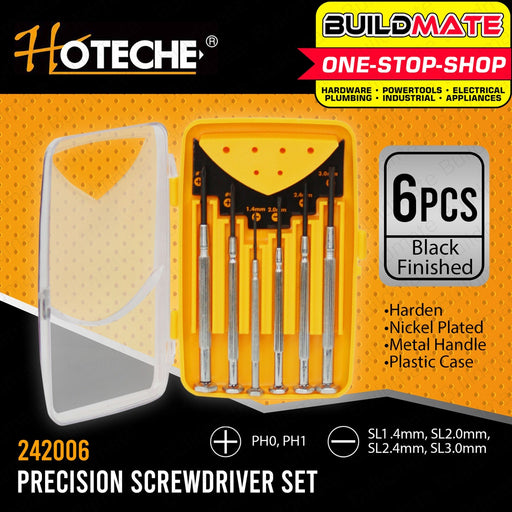 Buildmate Online DepotHOTECHE Precision Screw Driver Screwdriver Set 6 PCS/SET HTC-24200 •BUILDMATE• SPECIFICATIONS: ►Model: 24200 ►6 PCS/SET ►black finished, harden, ►...