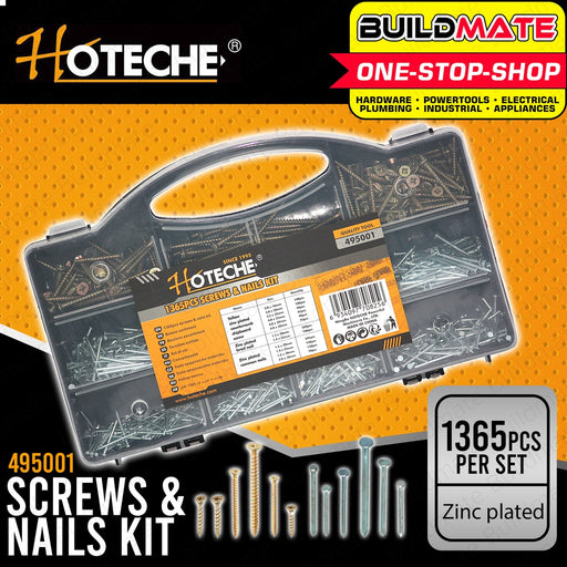HOTECHE 1365 PCS Screws and Nails Zinc Plated Kit HTC-495001 •BUILDMATE•