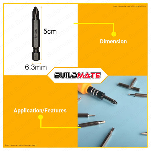 Buildmate Online DepotHOYOMA | LOTUS | MAILTANK Screwdriver Screw Bit 65mm SOLD PER PIECE •BUILDMATE• SPECIFICATIONS: ►65mm Phillips ►Double Ended Bit FEATURES: ►If ...