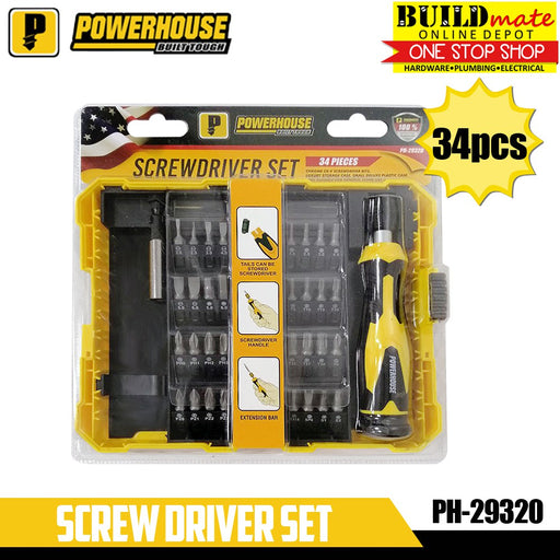 Buildmate Online DepotBUILDMATE Powerhouse Screwdriver Set 34PCS/SET PH-29320 - PHHT SPECIFICATIONS: ►1PC Dual Color Screwdriver handle ►1PC 60mm Magnetic Extens...