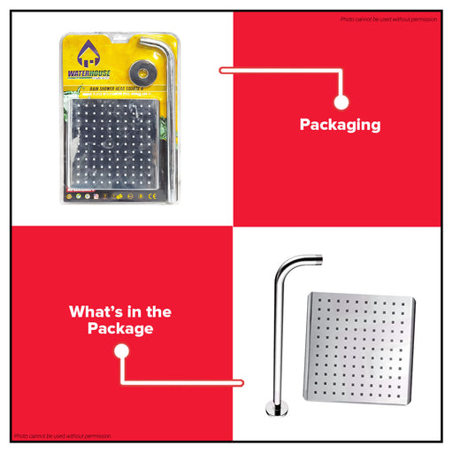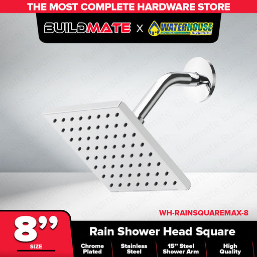 Buildmate Online DepotWATERHOUSE by POWERHOUSE Square Shower Head 8" with Arm Chrome •BUILDMATE• PHWH SPECIFICATIONS: ►8" ►Square Shower Head ►With Arm Chrome ►Stainle...