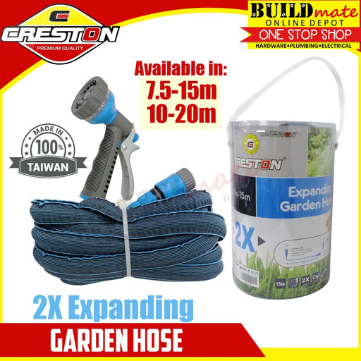 Buildmate Online DepotCRESTON 2X Expanding Garden Hose MADE IN TAIWAN AVAILABLE IN: ►7.5-15m CWX-8715 ►10-20m CWX-8720 SPECIFICATIONS: ►During Use - When filled wit...