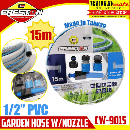 Buildmate Online DepotCRESTON 1/2" PVC Garden Hose w/Nozzles 15Meter CW-9015 100% ORIGINAL! HEAVY DUTY & HIGH QUALITY PRODUCT! ✔️AVAILABLE AND READY TO SHIP! ✔️COD ...