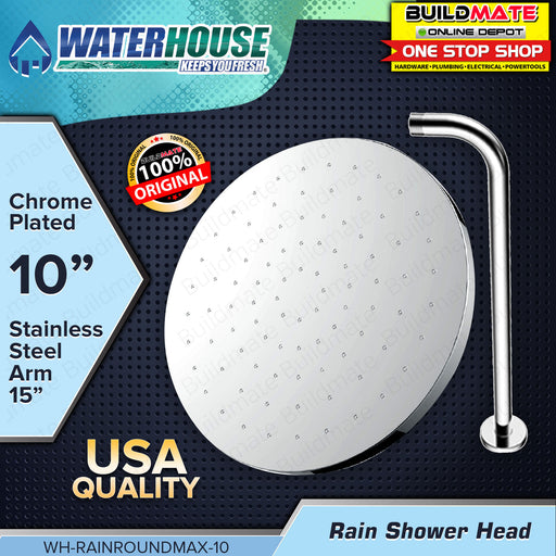 Buildmate Online DepotWATERHOUSE by POWERHOUSE Round Shower Head 10" with Arm Chrome •BUILDMATE• PHWH SPECIFICATIONS: ►10" ►Round Shower Head ►With Arm Chrome (15") ►Chr...