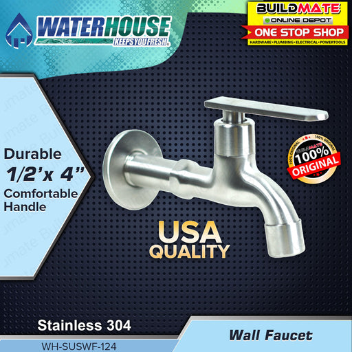 Buildmate Online DepotWATERHOUSE by POWERHOUSE Stainless Wall Faucet 1/2" x 4" SUSWF-124 •BUILDMATE• PHWH SPECIFICATIONS: ►1/2" x 4" S ►Stainless 304 ►Durable ►Comforta...