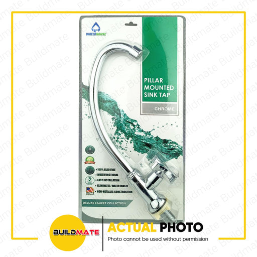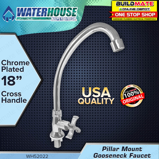 Buildmate Online DepotWATERHOUSE by POWERHOUSE Pillar Mounted Gooseneck Sink Tap Faucet Cross Handle 18" WH52022 •BUILDMATE• PHWH SPECIFICATIONS: ►18" ►Cross Handle ►P...