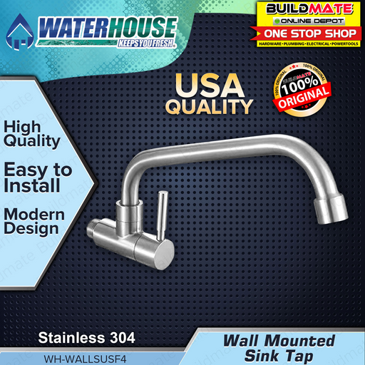 Buildmate Online DepotWATERHOUSE by POWERHOUSE Stainless 304 Wall Mount Faucet Modern Design F4 550G •BUILDMATE• PHWH SPECIFICATIONS: ►Stainless 304 ►Wall Mount ►Modern...