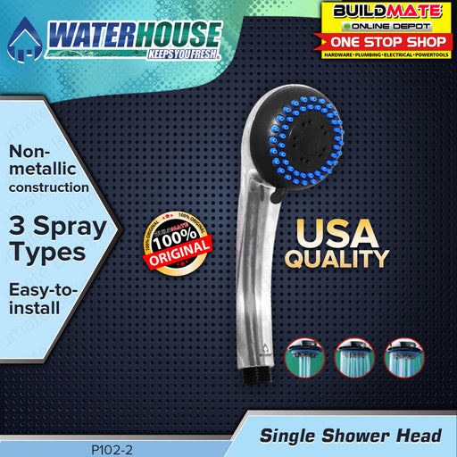 Buildmate Online DepotWATERHOUSE by POWERHOUSE ABS 3 Function Single Shower Head CHROME P102-2 •BUILDMATE• PHWH SPECIFICATIONS: ►CHROME ►3 Spray Types ►Non-metallic cons...