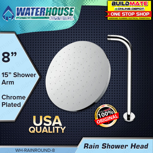 Buildmate Online DepotWATERHOUSE by POWERHOUSE Round Shower Head 8" with Arm Chrome •BUILDMATE• PHWH SPECIFICATIONS: ►8" ►Round Shower Head ►With Arm Chrome (15") ►Chr...