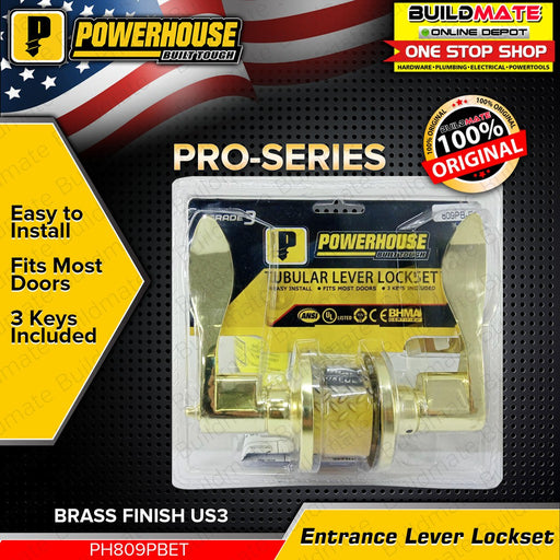 Buildmate Online DepotBUILDMATE Powerhouse PRO SERIES Tubular Entrance Lever Curved Lockset PH809PBET Brass Finish US3 - PHDH SPECIFICATIONS: ►Material: Brass Finish...