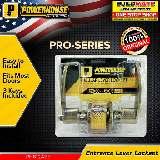 BUILDMATE Powerhouse PRO SERIES Tubular Entrance Lever Lockset PH812ABET - PHDH