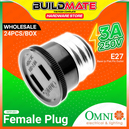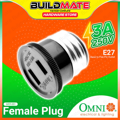 Buildmate Online DepotBUILDMATE Omni Female Plug 3A 250V E27 Base to Flat Pin Outlet Power Plug Socket Adapter WFP001 SPECIFICATION:►Model: WFP-001 / WFP001►Input Curre...