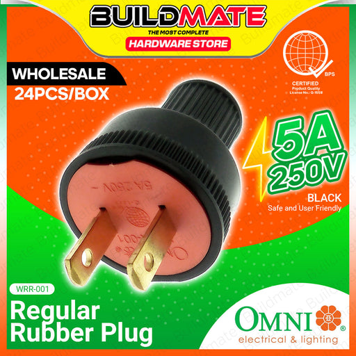 Buildmate Online Depot[WHOLESALE] BUILDMATE 24PCS/BOX Omni Regular Rubber Plug Black 5A 250V High Quality 2 Flat Pin Rubberized Electrical Power Plug WRR001 SPECIFICATIO...