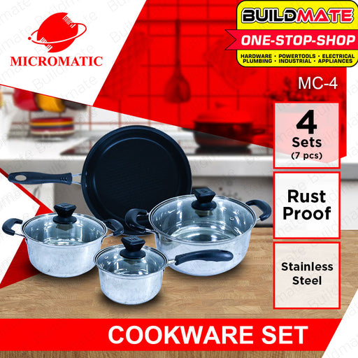 Buildmate Online DepotBUILDMATE Micromatic 4PCS/SET Cookware Pot Kitchenware Stainless Steel Kitchen Cooking Pot Great for Induction Cookers MCS-7 / MC4AVAILABLE IN:►4PC...
