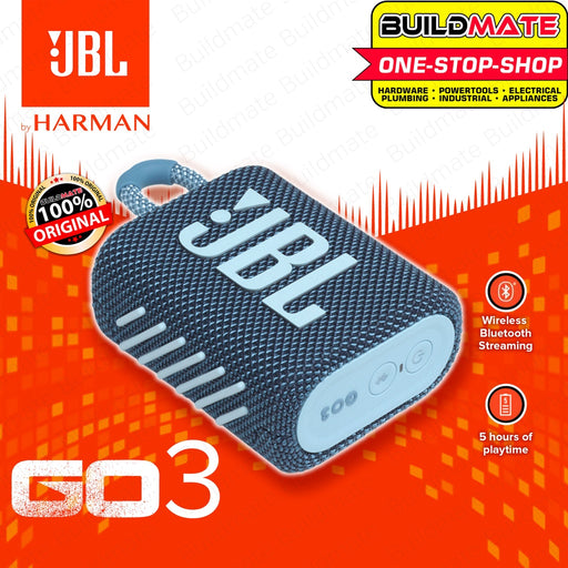 Buildmate Online DepotJBL Go 3 Rechargeable Portable Wireless Bluetooth Waterproof Speaker •BUILDMATE• SPECIFICATIONS: ►Bluetooth version: 5.1 ►Maximum music playing ...