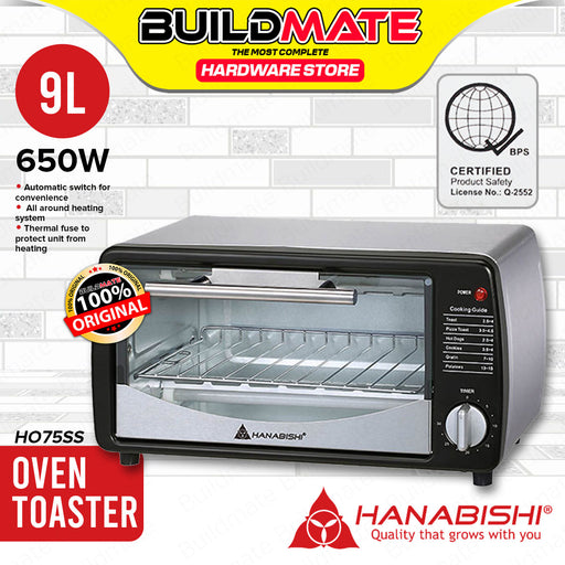 Buildmate Online DepotHANABISHI Oven Toaster 650W 9L HO-70 •BUILDMATE• SPECIFICATIONS: ►Capacity 9 liter ►30 min. timer with bell ring ►Full black body ►2 pcs. quartz he...
