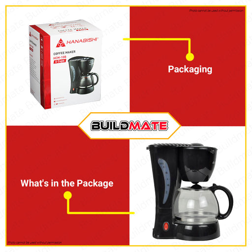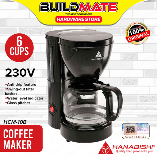 Buildmate Online DepotBUILDMATE Hanabishi 550W Coffee Maker 6 Cups Electric Anti-Drip Coffee Machine with Glass Carafe HCM-10B SPECIFICATION:►Model: HCM10B / HCM-10B►Wat...