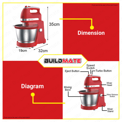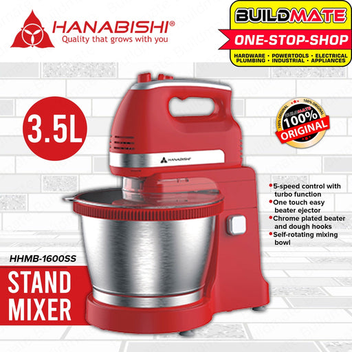 Buildmate Online DepotHANABISHI Handmixer Hand Mixer with Mixing Bowl 3.5L HHMB-1600SS •BUILDMATE• SPECIFICATIONS: ►3.5 liter large capacity mixing bowl ►5-speed control...