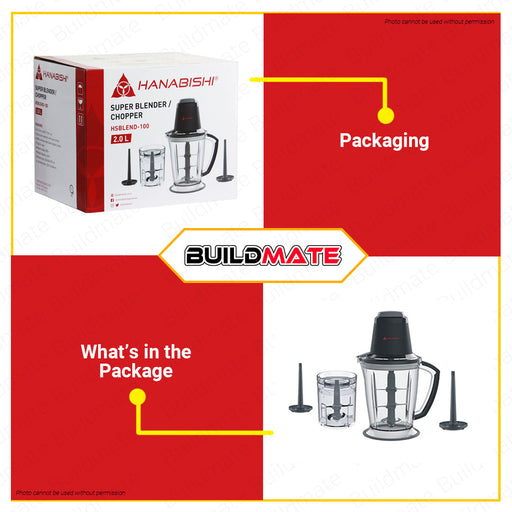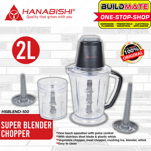 Buildmate Online DepotHANABISHI Super Blender / Chopper 2.0 liter & 0.7 liter cup HSBLEND-100 •BUILDMATE• SPECIFICATIONS: ►Capacity: 2.0 liter & 0.7 liter cup ►O...