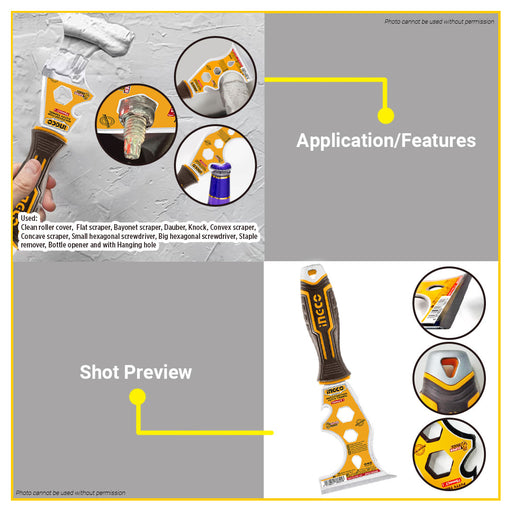 Buildmate Online DepotBUILDMATE Ingco Multifunction Putty Trowel 75mm Filling Wall Knife Scraper Plastering Scraping Tool for Flat Scraper HPUT18060M - IHT SPECIFICATION...