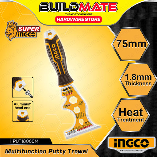 BUILDMATE Ingco Multifunction Putty Trowel 75mm Filling Wall Knife Scraper Plastering Scraping Tool for Flat Scraper HPUT18060M - IHT