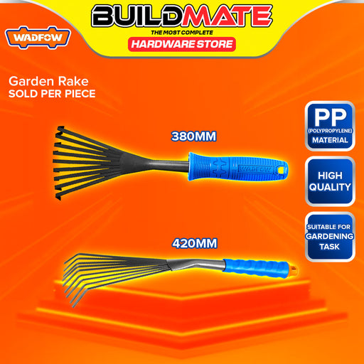 Buildmate Online DepotBUILDMATE Wadfow Mini Garden Rake 380mm / 420mm Hand Garden Leaf Fork Comb Soil Tiller Compact Lawn Rakes Gardening Hand Tools WWK1109 / WWK2142 - ...