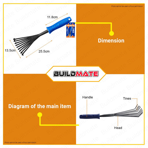 Buildmate Online DepotBUILDMATE Wadfow Mini Garden Rake 280mm / 340mm Hand Garden Leaf Fork Cim Soil Tiller Compact Lawn Rakes Gardening Hand Tools - WHT AVAILABLE IN:...