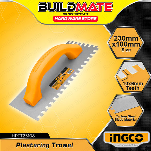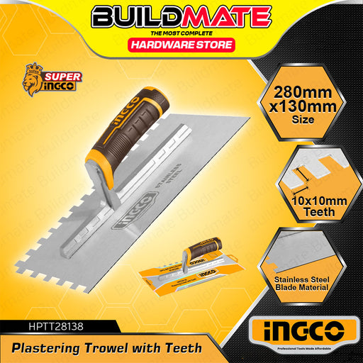 Buildmate Online DepotBUILDMATE Ingco Plastering Trowel with Teeth 230x100mm / 280x130mm Notched Tile Spreader Trowel Plastering Tool - IHT AVAILABLE IN:►230 x 100mm - H...