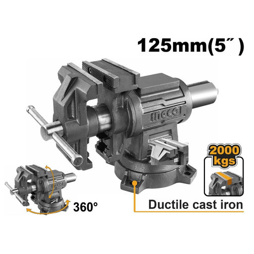 BUILDMATE Ingco 5" Inch Bench Vise with Anvil Bench Vise for Workbench Swivel Base Clamp HBV085 - IHT