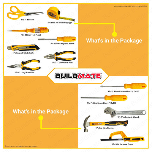 Buildmate Online DepotINGCO 120 PCS Handtools Hand Tools Set HKTHP21201 •BUILDMATE• IHT SPECIFICATIONS: ►Model HKTHP21201 Accessories ►1 pc 8 oz. Claw hammer. ►1 pc of ...