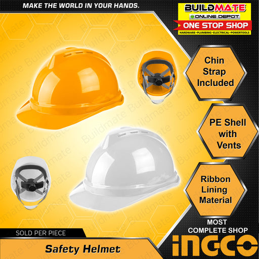 BUILDMATE Ingco Safety Helmet PE Shell with Vents White / Orange Construction Worksite Protective Hard Hat Safety Head Gear Protection HSH201 / HSH202 - IHT