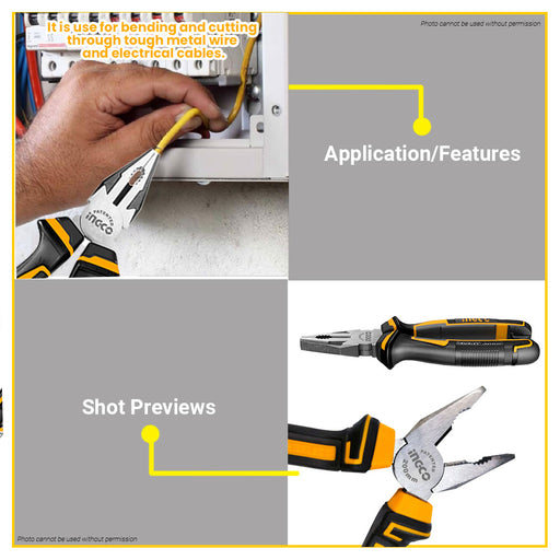 Buildmate Online DepotBUILDMATE Ingco Combination Pliers 6" (160mm) Linesman Cutting & Gripping Electricians Wire Cutting Pliers HCP28168 - IHT SPECIFICATION:►Model:...