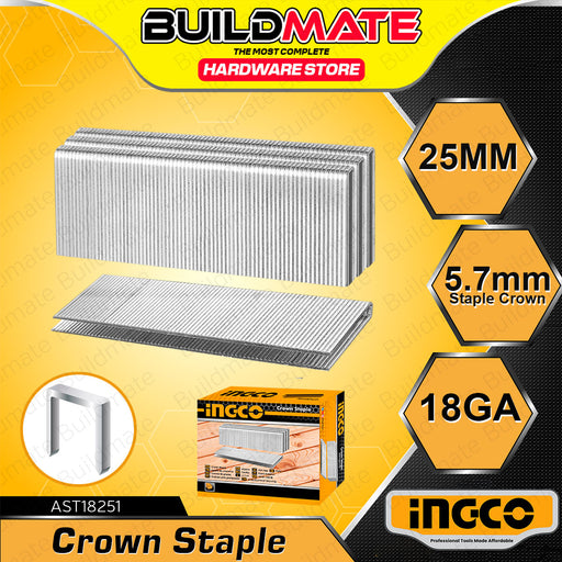 Buildmate Online DepotBUILDMATE Ingco 2500PCS/SET 5.7MM Crown Staple 25MM - 40MM for DIY Wood Working and Construction - IHTAVAILABLE SIZE:►25MM AST18251►35MM AST18351►4...