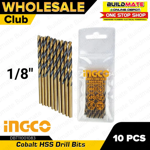 Buildmate Online Depot[WHOLESALE] INGCO 10PCS/SET Cobalt HSS Twist Drill Bit 1/8" Inch Impact Drill Bit Set For Metal Drilling , Brick, Tile, Cement, Ceramic, Glass, And...