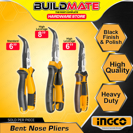 BUILDMATE Ingco 6" Inch Bent Nose Pliers / 8" Inch High Leverage Bent Nose Pliers Hand Tools for DIY Craft HBNP28168 / HHBNP28201 - IHT