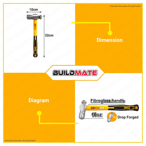 Buildmate Online DepotBUILDMATE Ingco Ball Pein Hammer 16oz - 32oz Dual Head Metalworking Engineer Machinist Ball Peen Forging Hammer - IHT AVAILABLE IN:►16oz - HBPH880...